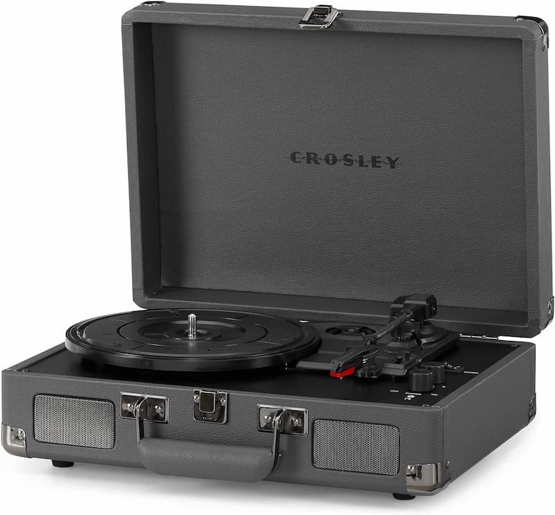 El Crosley Cruiser tiene un diseño clásico y retro, en forma de maleta, lo que le confiere un estilo vintage. Es compacto y cuenta con un asa para facilitar su transporte, convirtiéndolo en un tocadiscos portátil.
